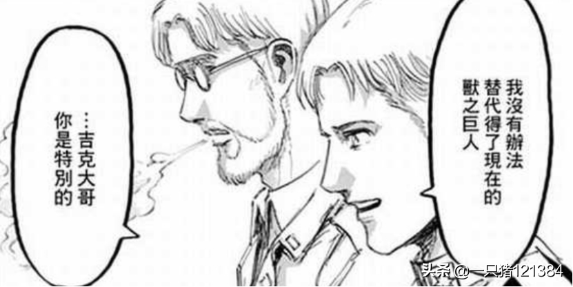 结果吉克的兽之巨人强的一批,因为体内有王血,所以可以通过吼叫声让喝了他脊髓液的艾尔迪亚人变成无垢巨人,还能操控他们。除此之外,吉克的兽之巨人在力量上也完全不输莱纳的铠之巨人,加上他那变态版的抛掷技术,兽之巨人这才翻身,成为了有用的战力。不过话又说回来,兽之巨人也就是在吉克手上才那么强,换了其他人确实是最弱的。