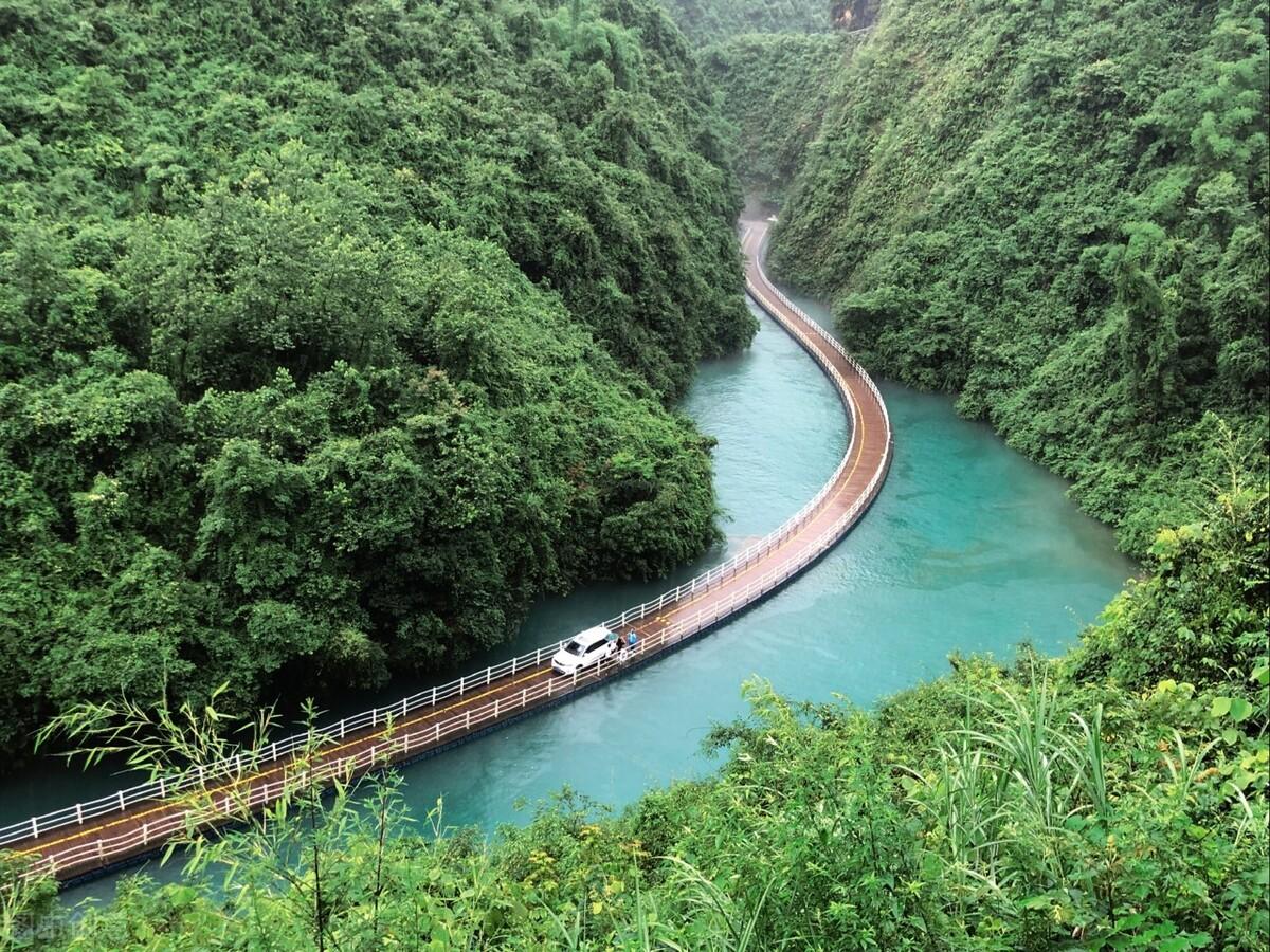 屏山大峡谷,位于鹤峰县容美镇。这里峭壁耸立,碧水环绕,地缝的河水清澈见底,一叶小舟漂浮在水面,犹如悬浮在空中一般,美妙绝伦,因而这里被游客称为中国的“仙本那”。