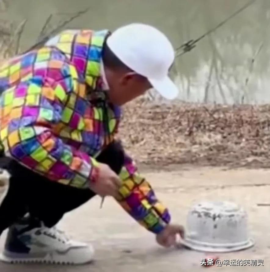 你可能觉得他只会钓鱼,你看他玩起炮来也像个孩子,鞭炮一点,铁盆一盖,这妥妥就是小孩子过年的最爱嘛。
